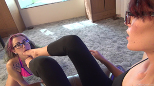 Stocking Slaves - Mistress Nickole practices her dancing on the pole while her slave crawls below to worship on her feet and gets stepped on for her amusement